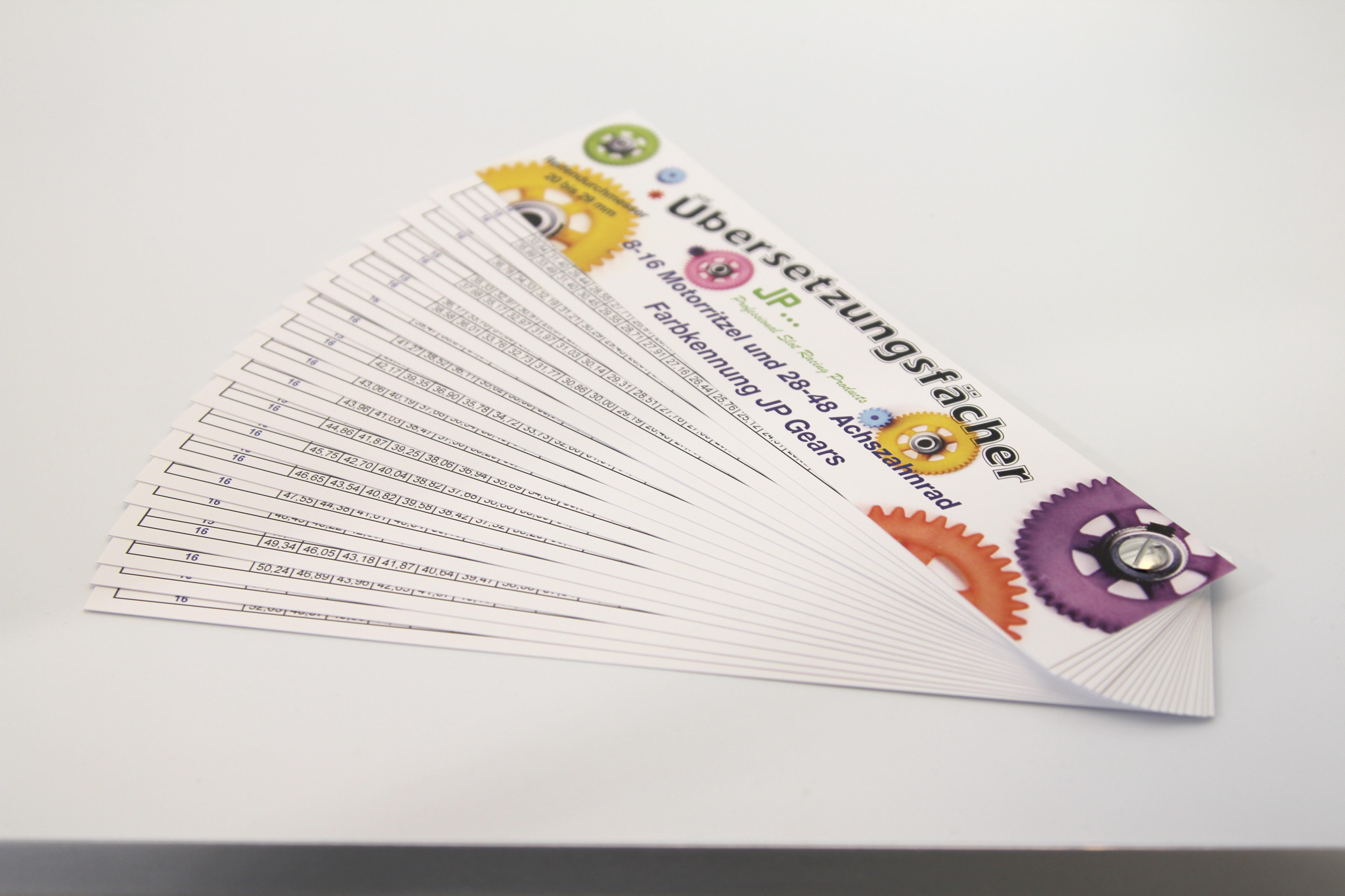 Der JP - Übersetzungsfächer hilft die richtige Getriebe-Übersetzung heraus zu finden.